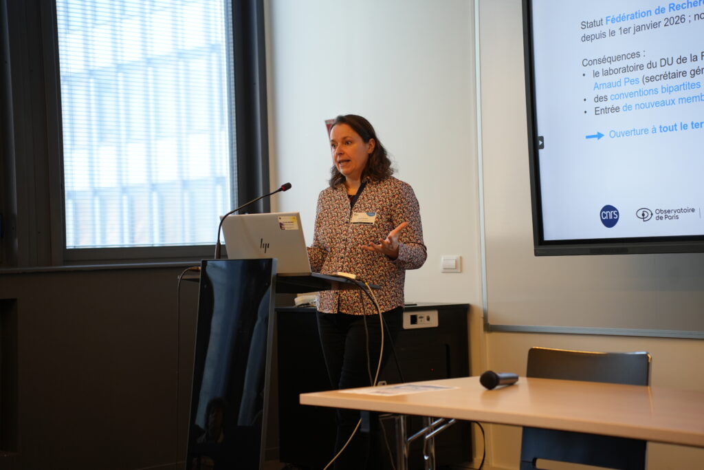 La présentation d’ouverture, assurée par la Directrice Coralie Neiner, a permis de dresser un état des lieux des objectifs et des activités de la Fédération, de revenir sur l’année écoulée et de partager ses perspectives pour celle à venir. Elle a notamment mis en avant sa structuration progressive et étendue au territoire national facilitée par son nouveau statut de Fédération de recherche et d’animation (FRA), les efforts de représentation auprès des organismes de recherche, des agences et des acteurs du NewSpace, et le rôle clé des groupes de travail dans le traitement de sujets importants pour la communauté.