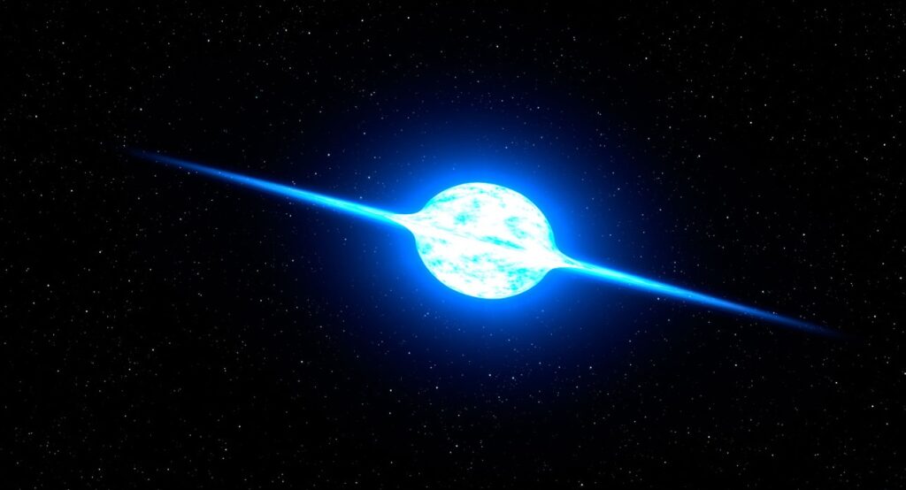 Le deuxième résultat porte sur l’étude de 25 Orionis, une étoile de type Be, c’est à dire entourée d’un disque de matière. Durant leur évolution, ces étoiles peuvent présenter un excès de moment angulaire qui était assez mal compris jusque-là. Avec le suivi effectué par BRITE, il a pu être conclu que les pulsations transportent du moment angulaire ce qui produit des éjections de matière.